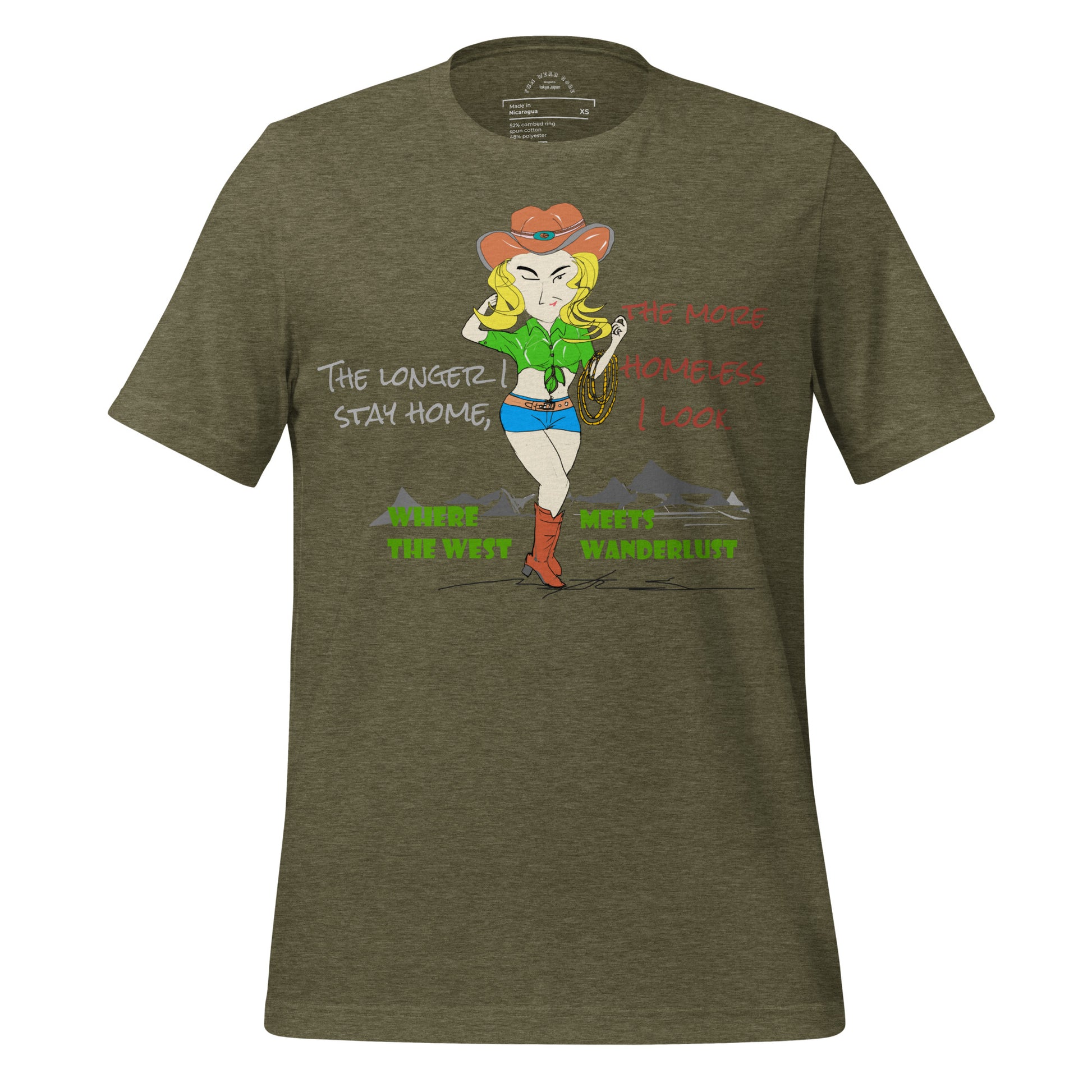 La camiseta definitiva 100 % algodón que cumple todas sus promesas. Su tejido preencogido mantiene su forma tras innumerables lavados, mientras que las costuras laterales crean una silueta favorecedora que se adapta a la perfección. El llamativo estampado de vaquera americana aporta una energía audaz y misteriosa a tu vestuario diario, perfecta para quien busca canalizar ese espíritu salvaje y seguro de sí mismo. Esta es la camiseta que usarás una y otra vez, ya sea para sacar a relucir tu lado más vaquero o simplemente para exigirle más a tus básicos.