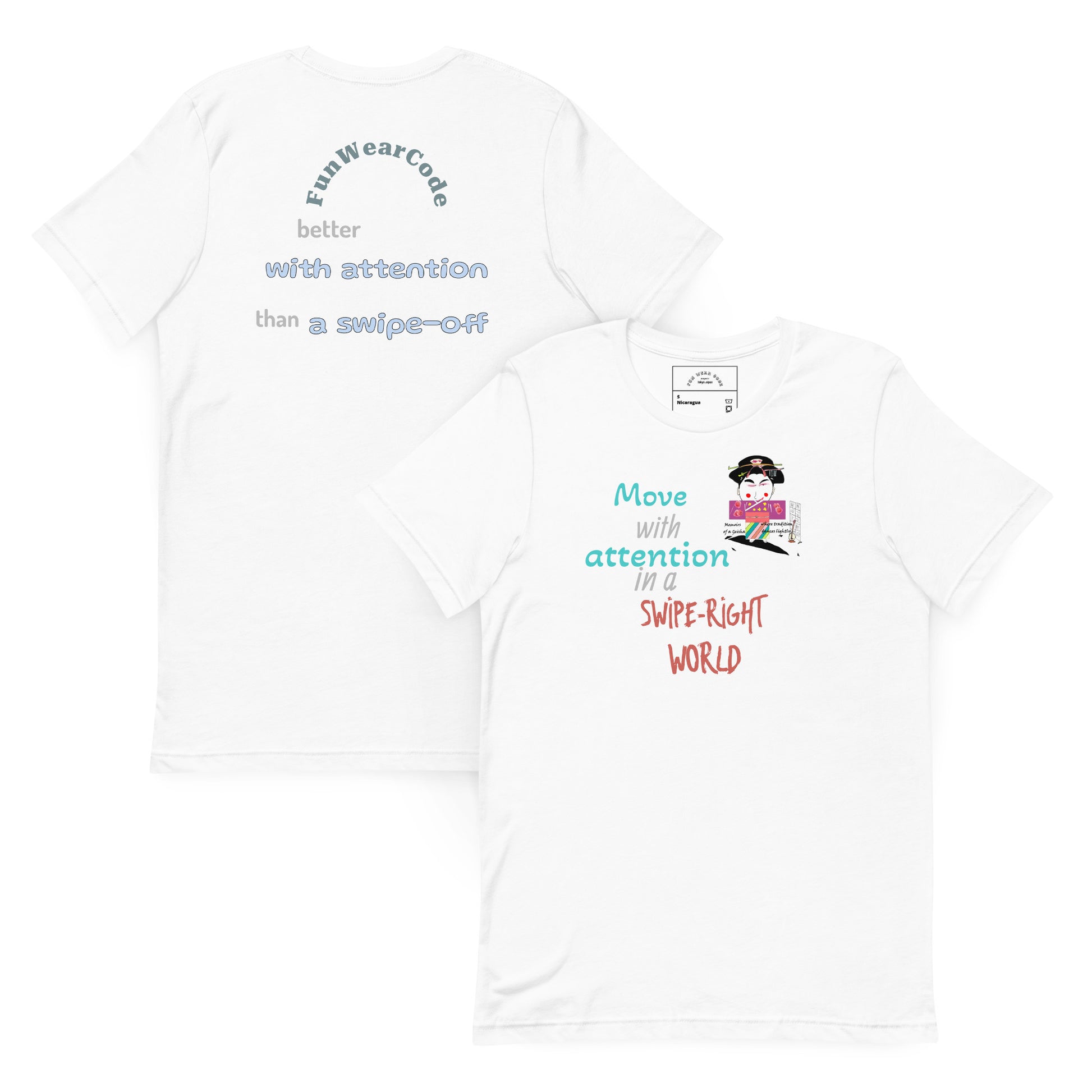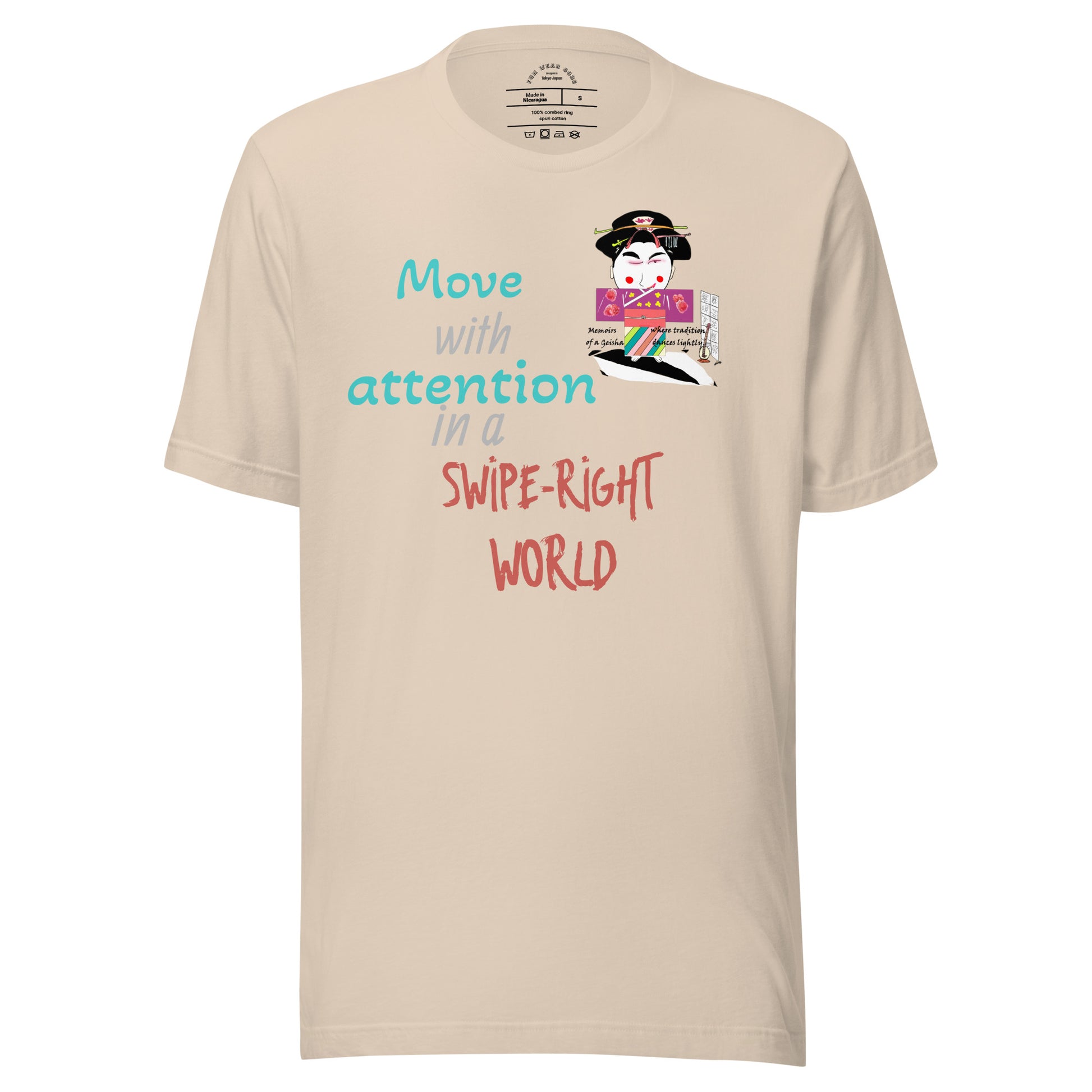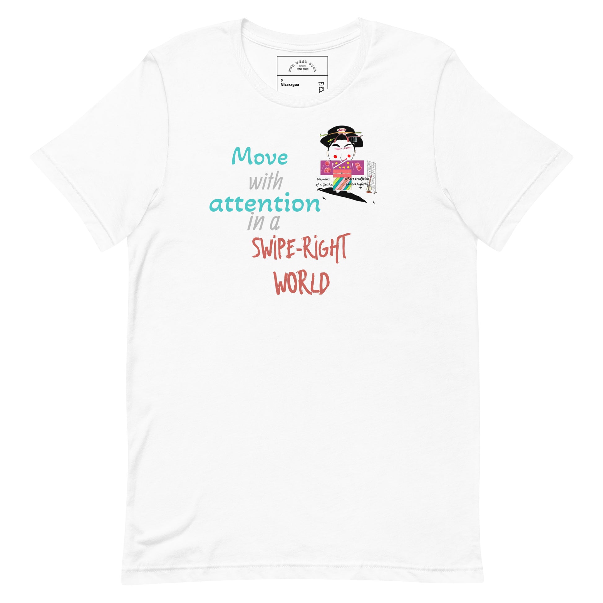 Mejora tu vestuario diario con esta sofisticada camiseta unisex que fusiona a la perfección la herencia cultural con un toque contemporáneo. Confeccionada en algodón ligero, ofrece comodidad sin renunciar a nada. Su diseño se inspira en la tradición japonesa y la aclamada película "Memorias de una Geisha", presentando motivos culturales clásicos desde una perspectiva moderna y divertida. Perfecta para quienes aprecian el diseño cuidado y las historias con significado en su ropa, esta prenda es tanto una prenda básica versátil como un tema de conversación atractivo. Ideal para usar en capas o en solitario, aporta una elegancia discreta a ocasiones informales.