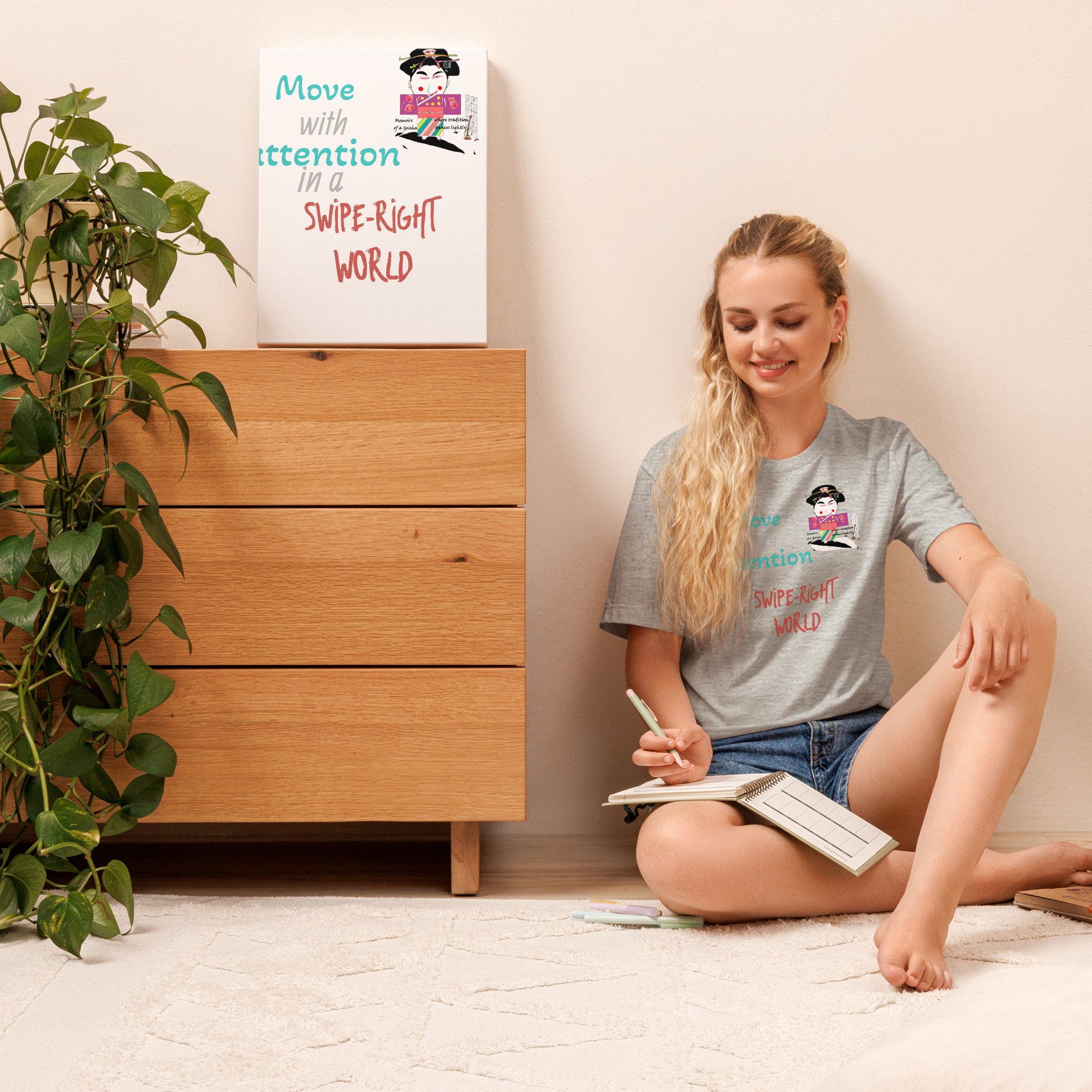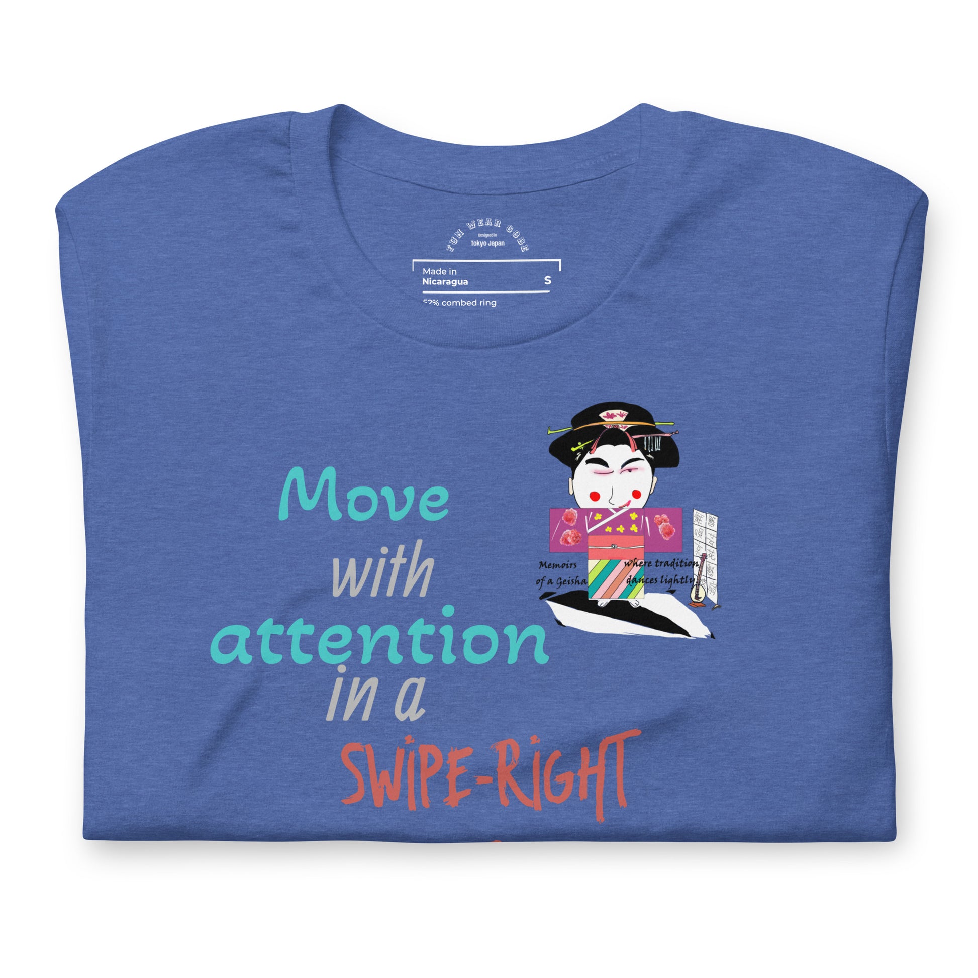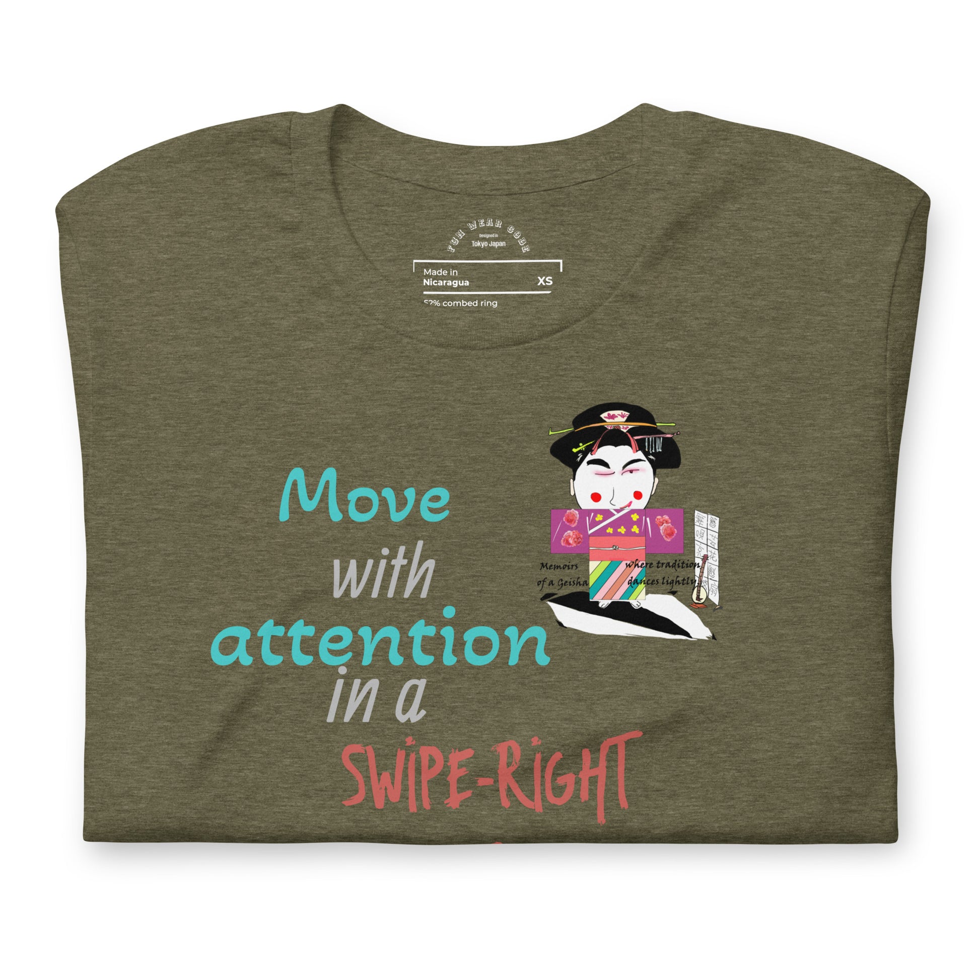 Mejora tu vestuario diario con esta sofisticada camiseta unisex que fusiona a la perfección la herencia cultural con un toque contemporáneo. Confeccionada en algodón ligero, ofrece comodidad sin renunciar a nada. Su diseño se inspira en la tradición japonesa y la aclamada película "Memorias de una Geisha", presentando motivos culturales clásicos desde una perspectiva moderna y divertida. Perfecta para quienes aprecian el diseño cuidado y las historias con significado en su ropa, esta prenda es tanto una prenda básica versátil como un tema de conversación atractivo. Ideal para usar en capas o en solitario, aporta una elegancia discreta a ocasiones informales.