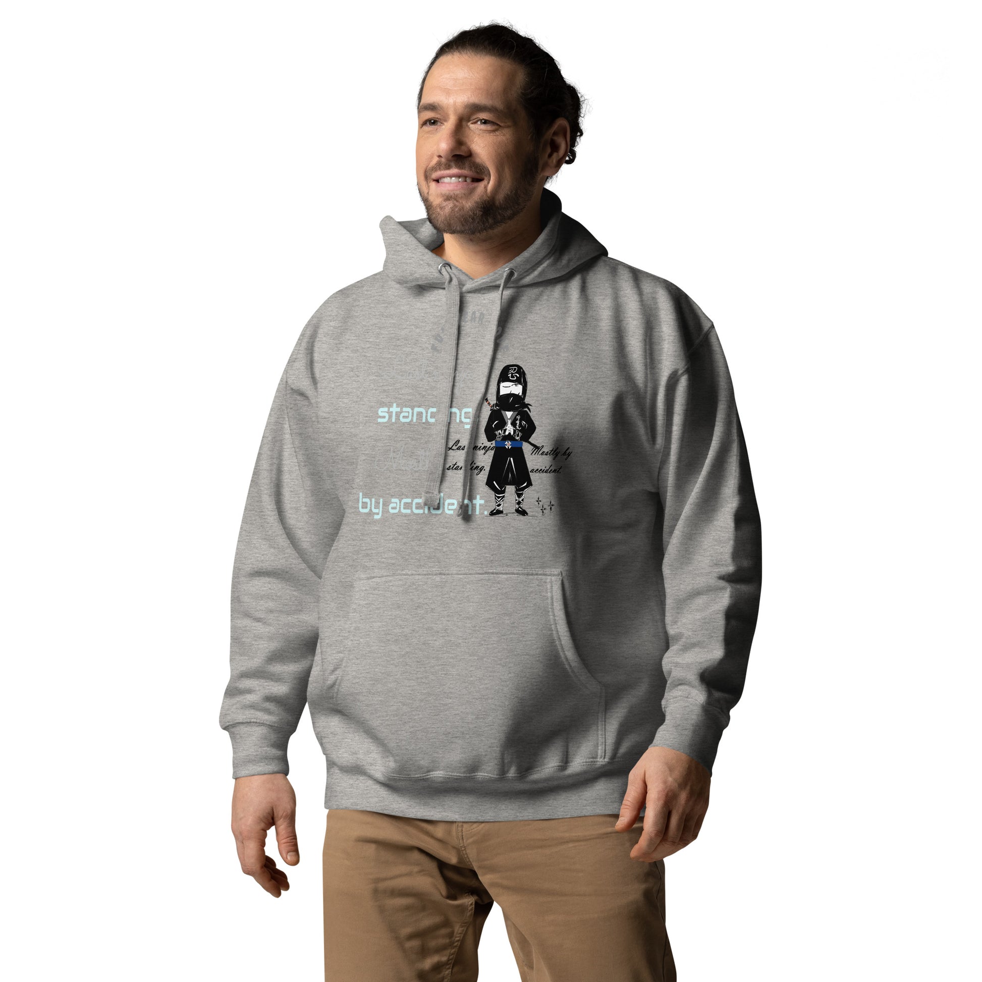 Elevate your everyday style with this premium pullover hoodie crafted from high-quality cotton for ultimate comfort. The comfort-fitted design features a cozy hood, matching drawstrings, and a functional front pocket—perfect for keeping your essentials close. What truly sets this hoodie apart is its unique whimsical ninja graphic design, adding a playful touch of personality and humor to your wardrobe. Whether you're relaxing at home or stepping out, this versatile piece brings together quality craftsmanship and creative flair that lets your individuality shine through.